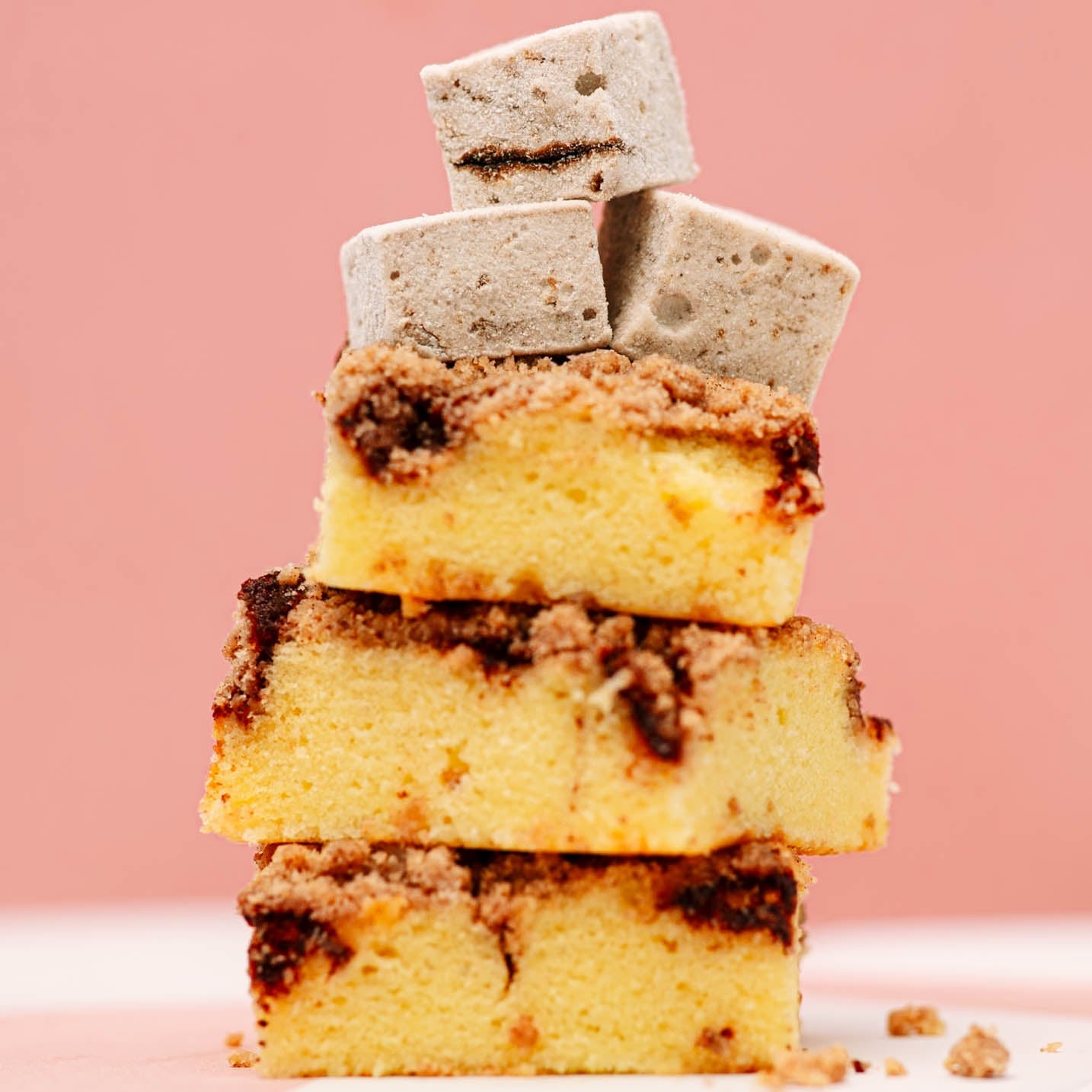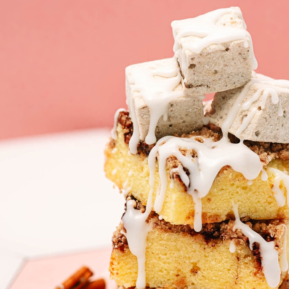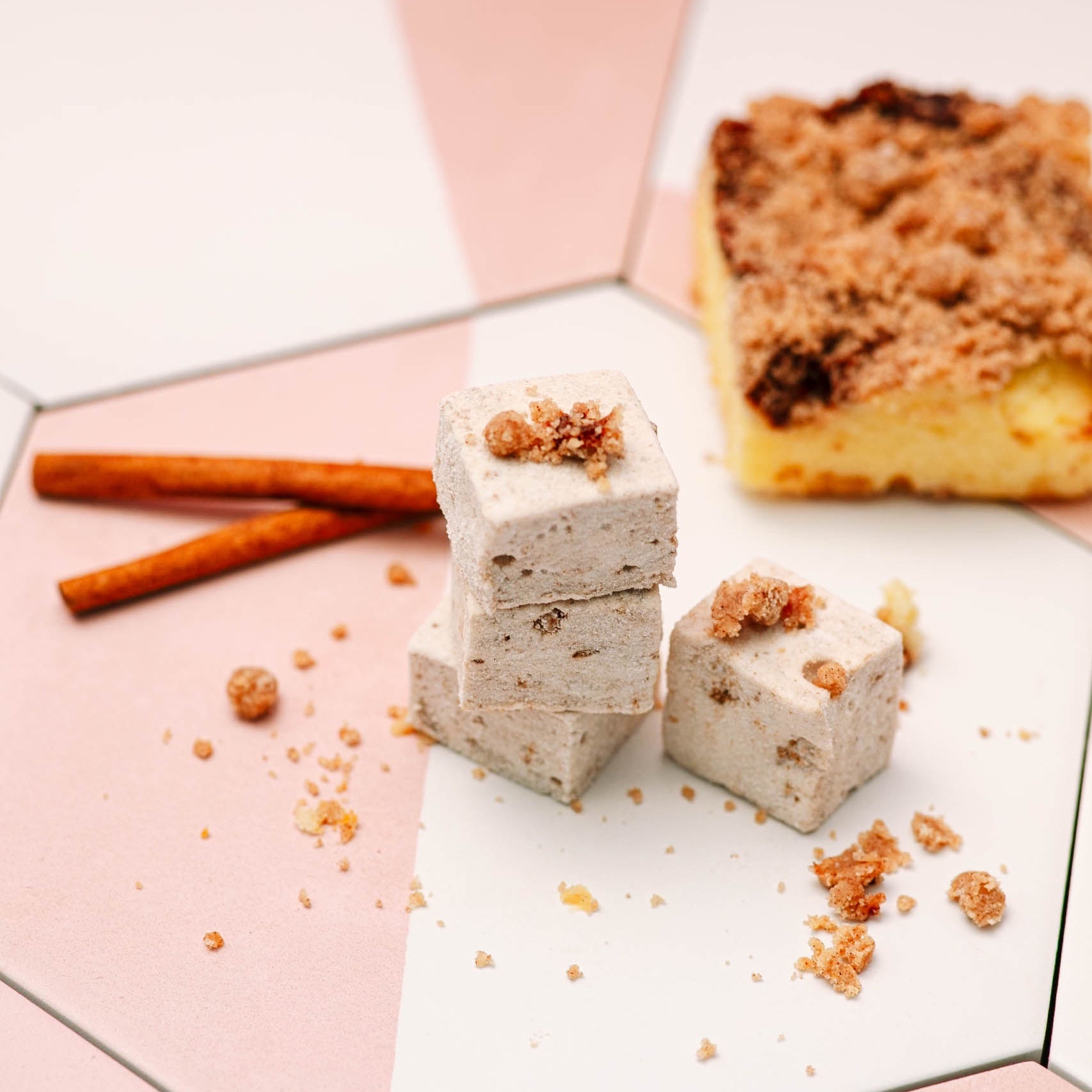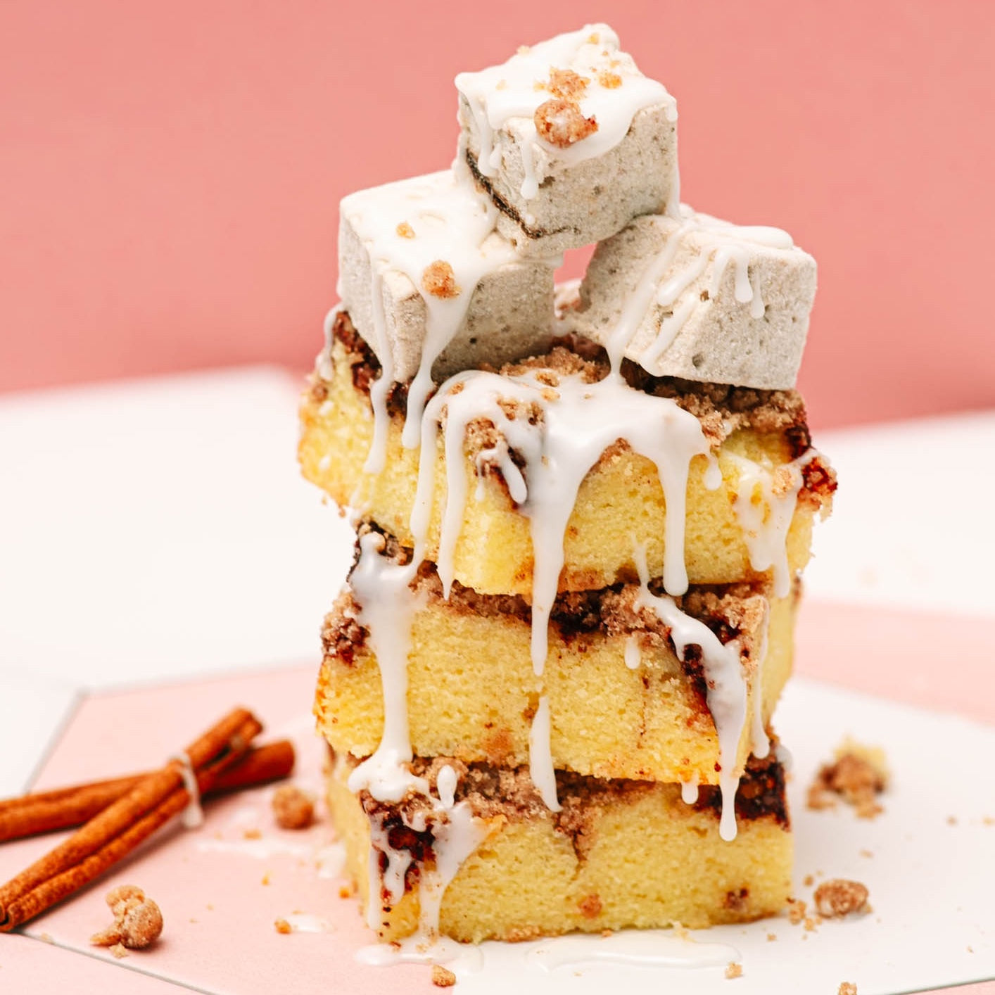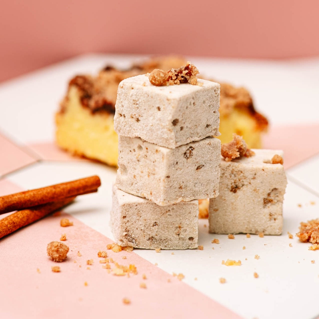 Non High Fructose Corn Syrup, Pure Cane Sugar, Light Brown Sugar, Water, Gluten-Free Crumble (Gluten-Free Flour [Sweet Brown Rice Flour, Tapioca Starch, Brown Rice Flour, Arrowroot Starch, Sorghum Flour, Xanthan Gum], Butter, Dark Brown Sugar, Cinnamon, Salt), Kosher Beef Gelatin, Less than 2% of: Natural Cinnamon Coffee Cake Flavoring, Cinnamon, Brown Food Coloring (Caramel Color, Sulfiting Agents), Salt, Powdered Sugar, Cornstarch, Pan Spray (Sunflower Oil, Sunflower Lecithin).